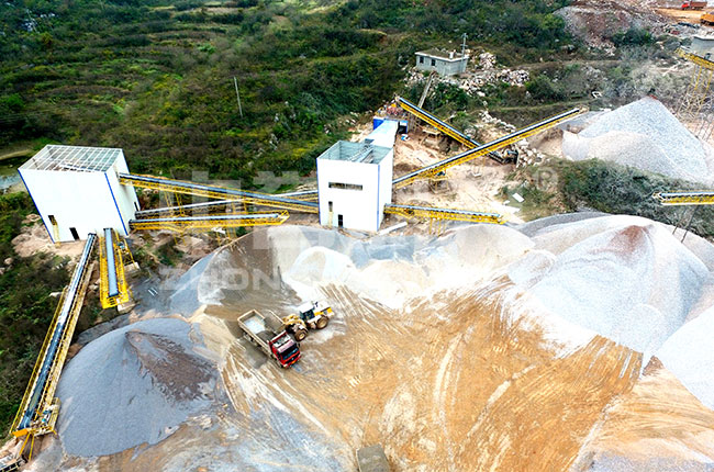 主要設備:振動給料機、重錘破碎機、錘式整形機、圓振動篩、螺旋洗砂機、皮帶機等。